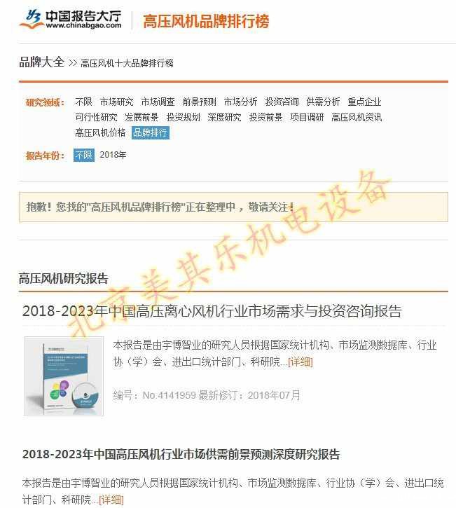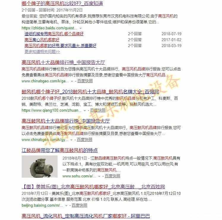 还有搜索出来的,排在前面的一些网页内容例如一些牌子网、品牌网、排名网之类的,出来的结果基本上都是需要给广告费而人为加上去的品牌,或者一些厂家在相关平台发布的一些比较知名的高压风机公司、把自己公司排在第一位而其他知名企业实际上有很多企业是不生产风机的。误导消费者。